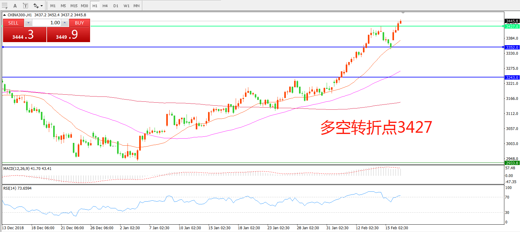 多空转折点:3427.00