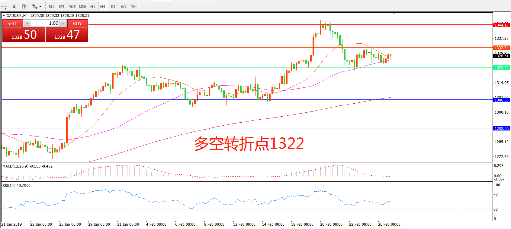 2月26日,美联储主席鲍威尔周二在美国参院银行业委员会发表讲话,表示尽管美联储对加息保持“耐心”,但对经济展望仍是积极的。目前美联储的缩表空间约为2500到3500亿美元。按照目前每月缩减约500亿美元的速度,年内结束缩表是大概率事件。黄金在鲍威尔发表讲话后反应平淡,最终收报1328.5美元/盎司