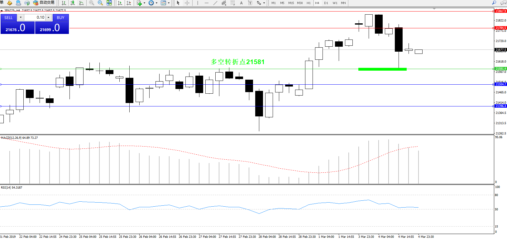 交易策略:21581上方看涨,目标21784、21867