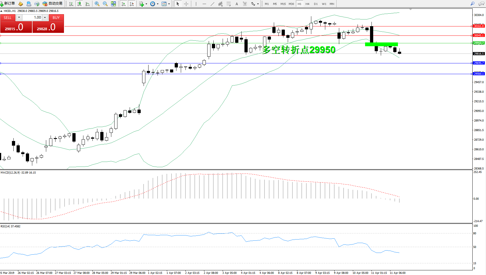 亚洲股市多数收跌,沪指跌破3200点,香港恒生指数小幅高开后震荡下行,截至收盘跌0.93%,报29839.45点。投资者消化最新贸易和脱欧动向。国家统计局公布3月份全国居民消费价格 CPI 按年上升2.3%,略低於预期升2.4%。沪深股市在公布数据后,即时回落倒跌,随后续在低位徘徊。美联储纪要显示暂停加息,美股也未能提振恒指走强。导致恒指跌破三万关口。