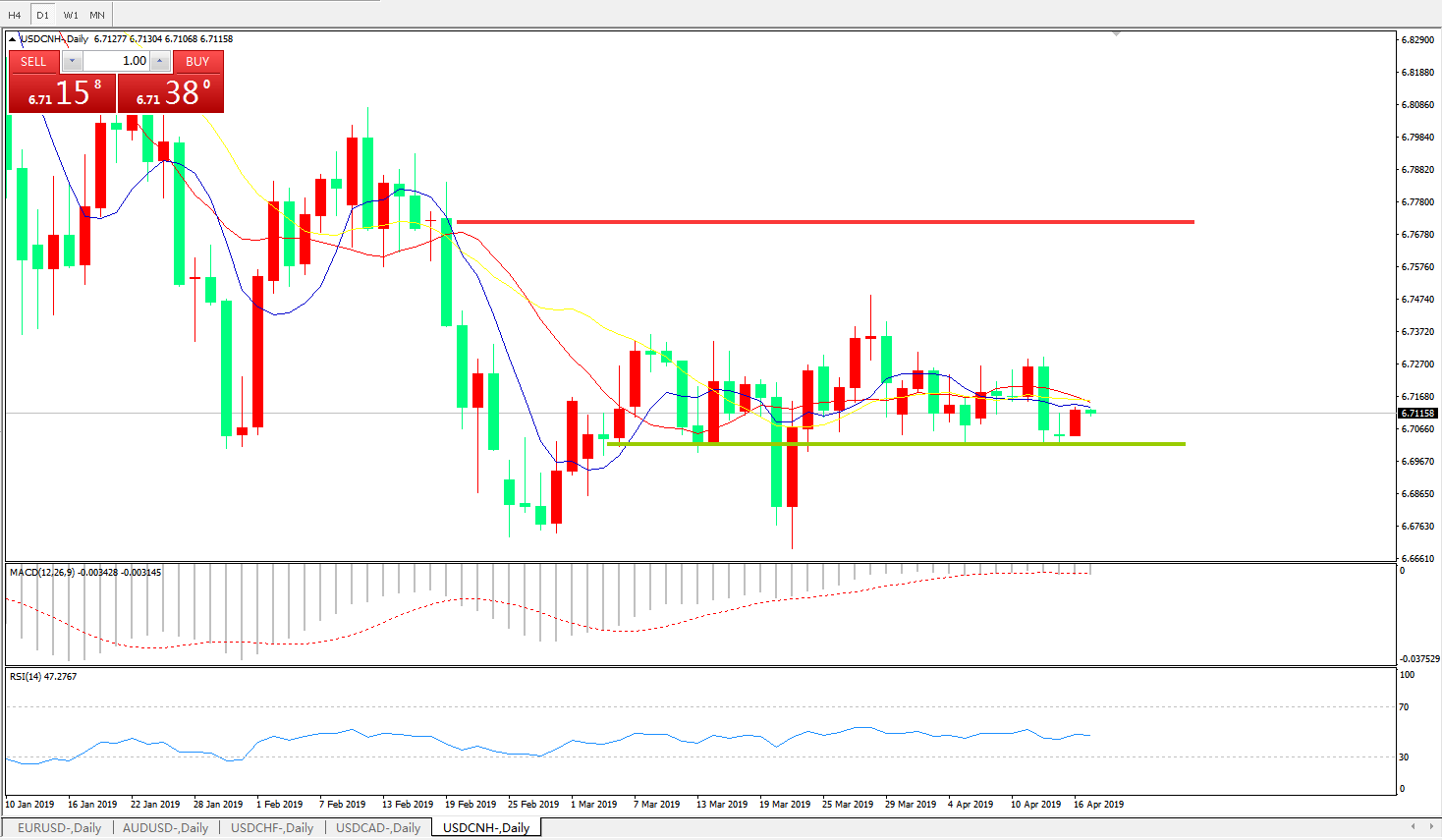 备选策略: 在6.6990之下,看跌,目标价位为6.6730,然后为6.6325 。