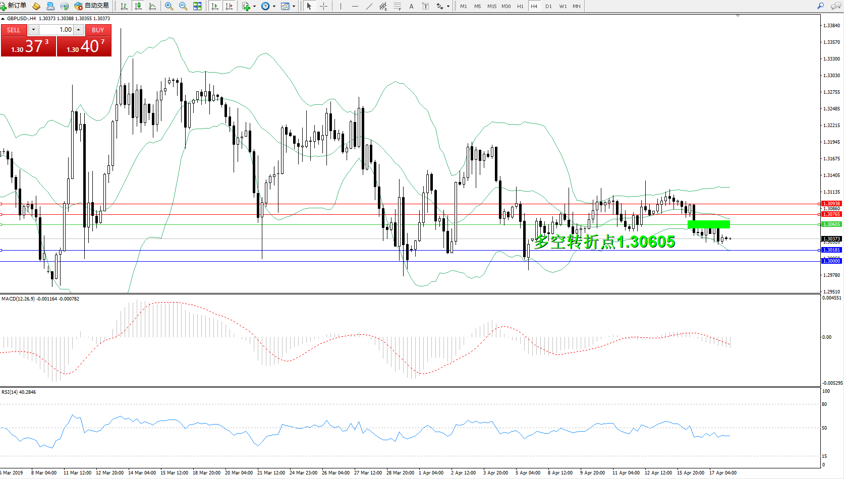 交易策略:1.30605下方看跌,目标1.30181、1.30000