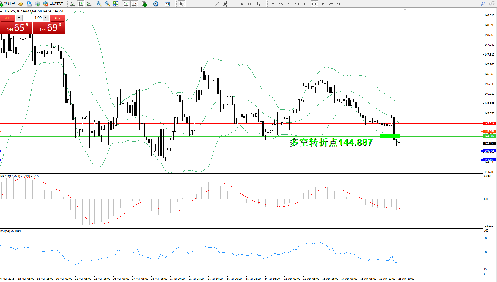 交易策略:144.887下方看跌,目标144.409、144.102