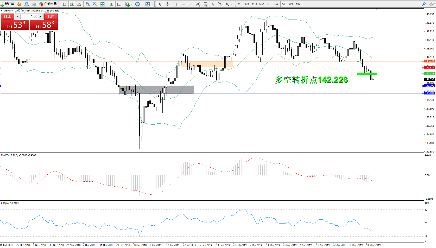 交易策略:142.226下方看跌,目标140.706、139.800