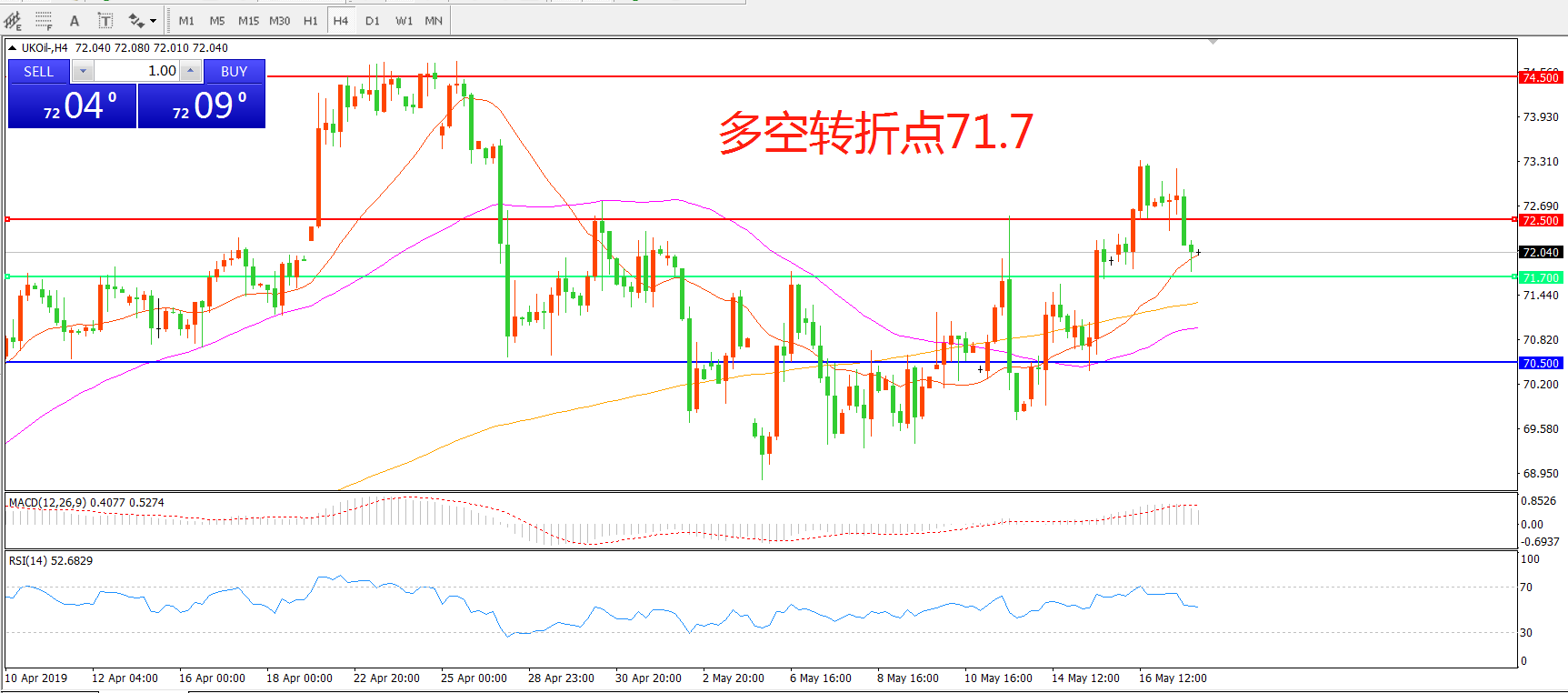 多空转折点:71.70