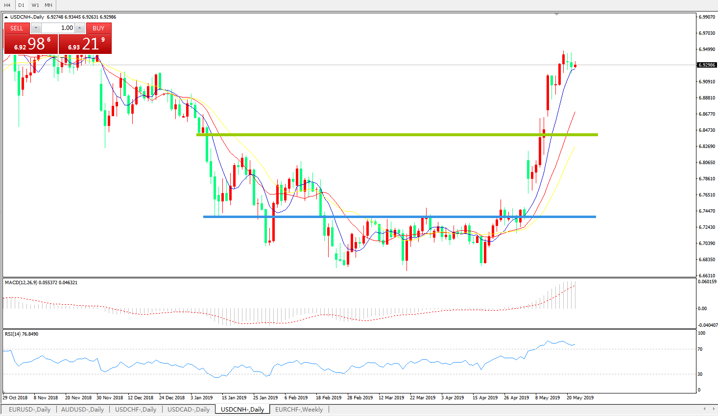 技术面简析:日线均线呈有序多头排列看多,短期均线有回归修正需求,MACD0轴上方运行且动能柱0轴上方持续放量RSI超买区域有下行迹象,汇价强力上攻后维持整理态势,预计短期汇价有进一步上行空间,中期重点关注中美贸易争端后续进展