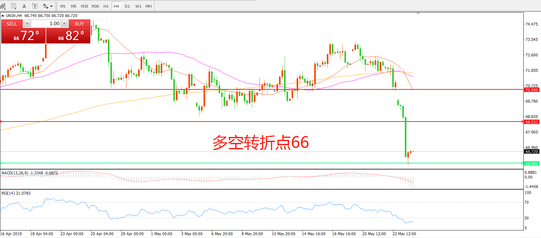 交易策略:在66.00之下看跌,目标64.00   61.50