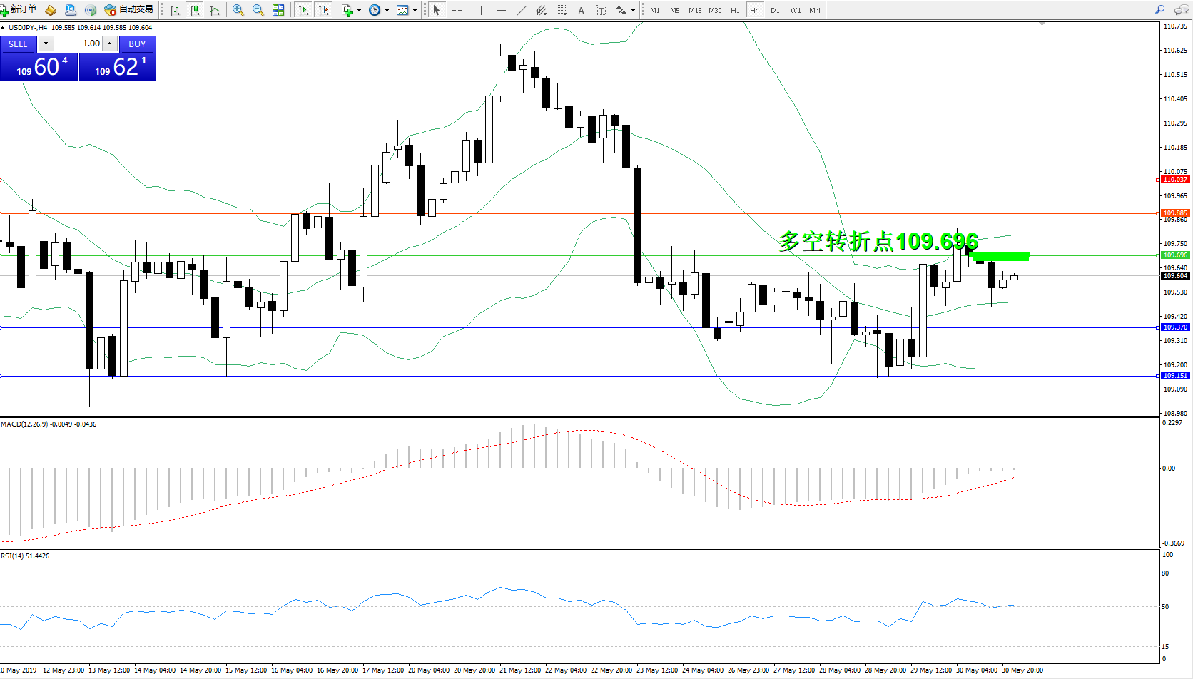 美日交盘中触及一周新高,日内全球基本面消息清淡,在贸易危机和英国脱欧都没有进一步消息传出的状况下,投资者本着“没有坏消息就是好消息”的心态,开始逐步出脱避险资产多头仓位。日内唯一值得重点关注的数据显示,美国一季度GDP同比增速修正值为3.1%,相比初值的3.2%略微下修,但仍与市场预期相符,同时也依然处于相当高的增长区间,于是美元指数依旧在98上方的高位强势盘整。而此前有消息显示,日本投资者正在进行套利交易,美日跌至低于109之后,他们就会考虑大量买入美元,这使得日元前期的涨势空间收到了遏制,美日近期的反弹整固料还将持续下去。