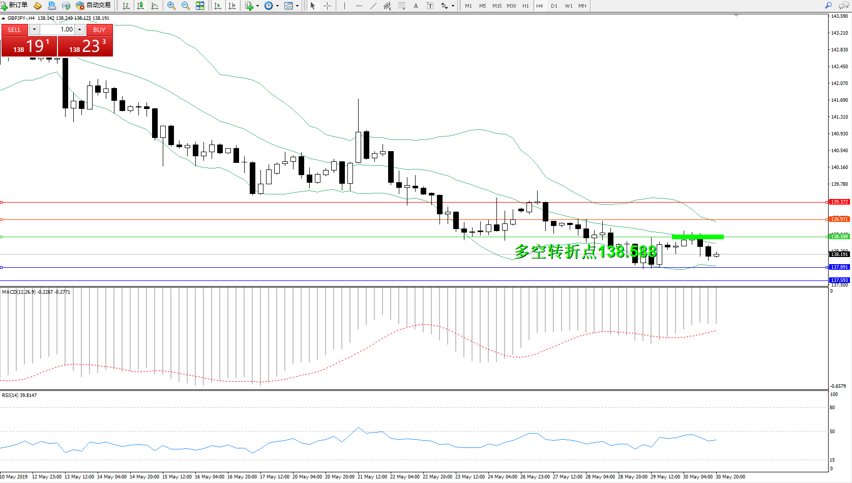 交易策略:138.588下方看跌,目标137.891137.593