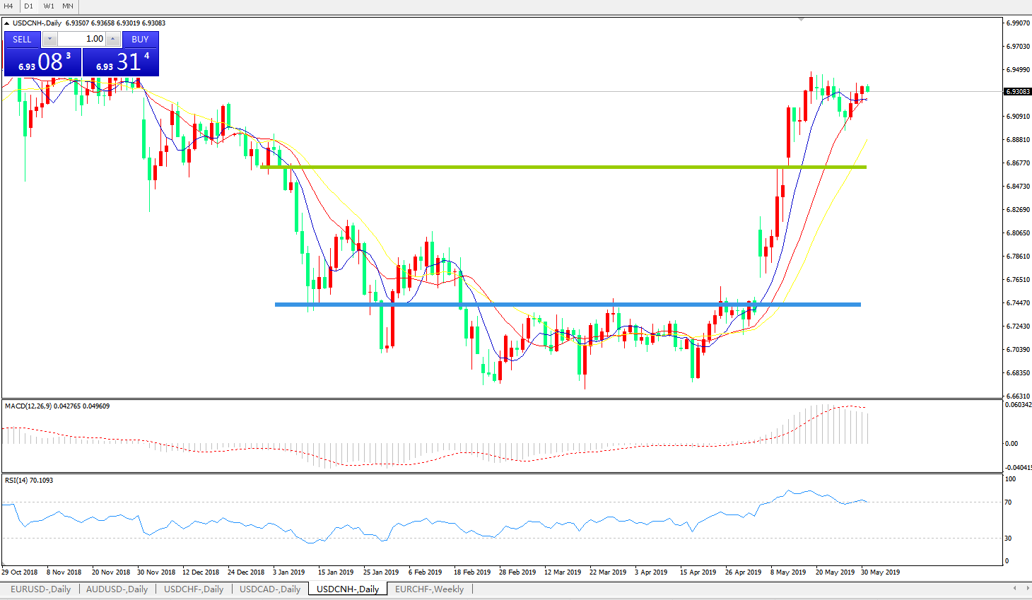 美元周四基本持平,势将连续第四个月月线上涨,因中美贸易僵局促使交易商将资金投入包括美元在内的被认为安全的货币。纽市尾盘,追踪美元兑六种主要货币走势的美元指数跌0.01%,至98.151。美元指数一周前触及98.371,这是2017年5月以来的最强,尽管交易员加大了对美联储将多次降息的押注,但美元的强势仍在持续。美元人民币延续高位整理,企稳态势明显。
