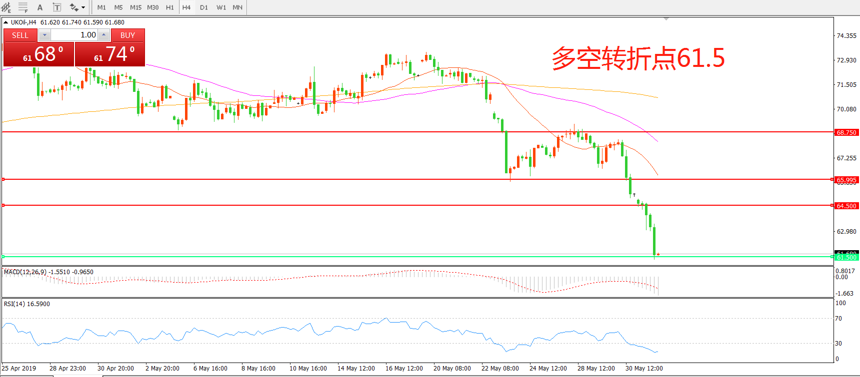 交易策略: 在61.50之下看跌,目标57.50 53.00