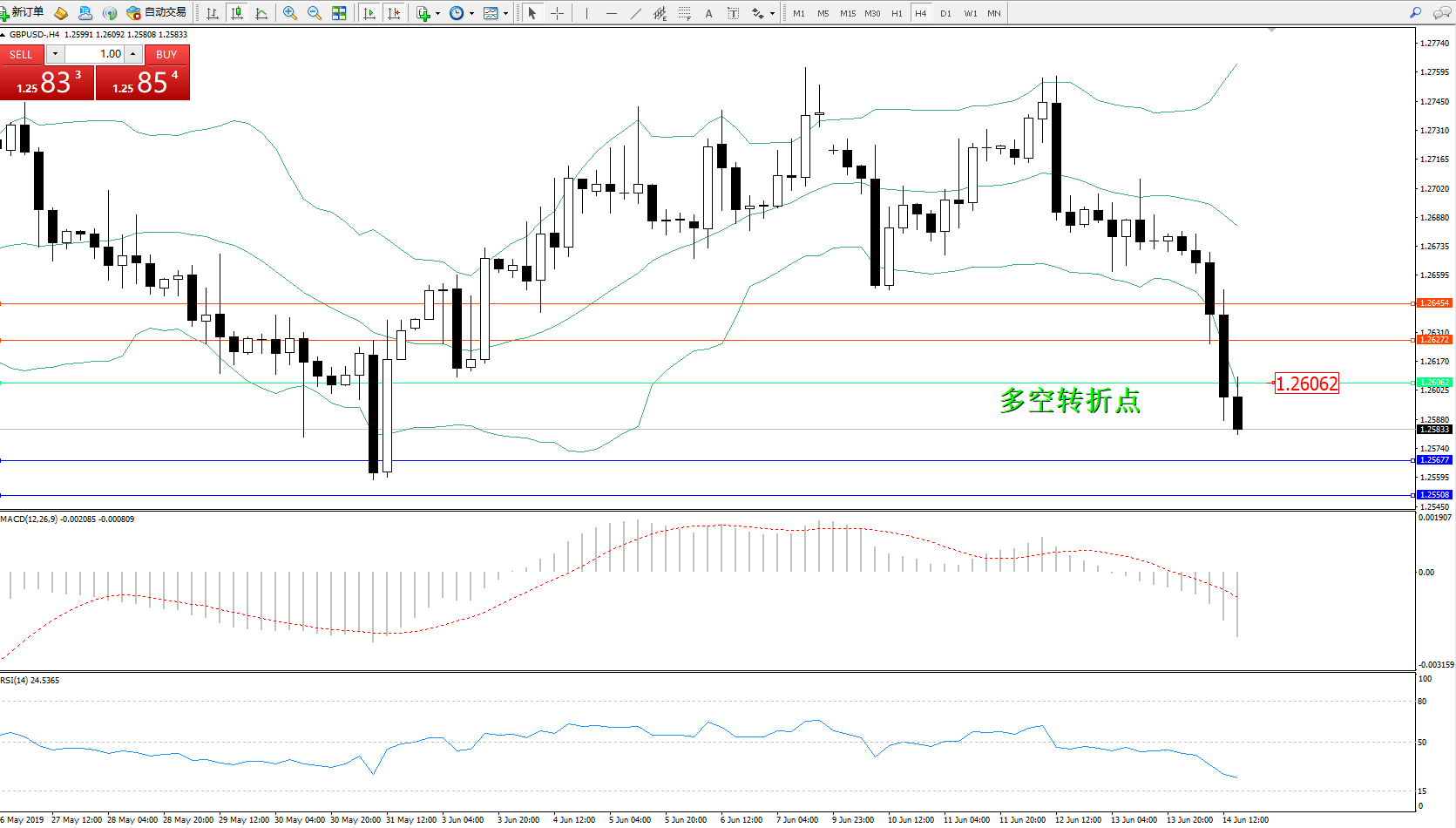 交易策略:1.26062下方看跌,目标1.25677、1.25508