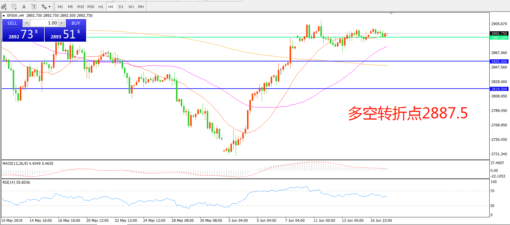 多空转折点:2887.50