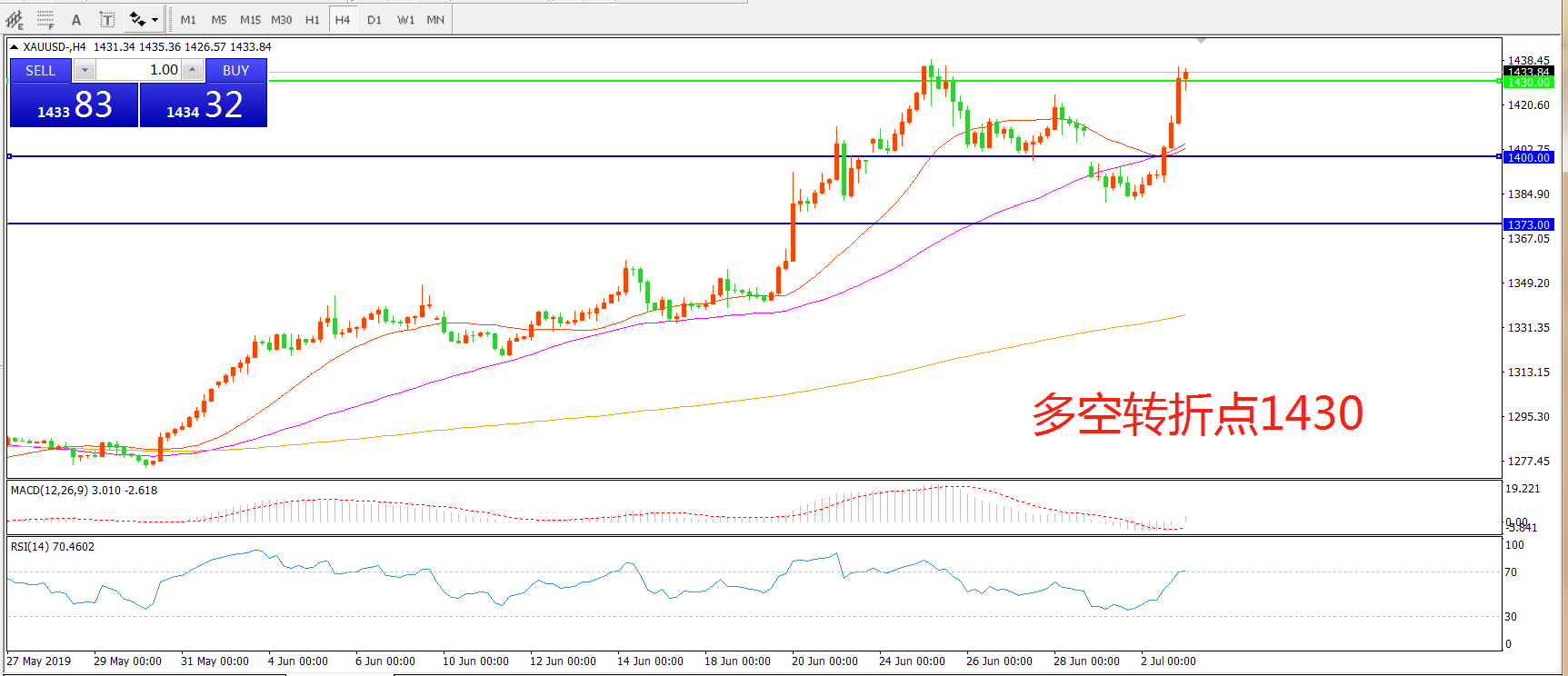 备选策略:在1430.00之上看跌,目标1400.00        1373.00