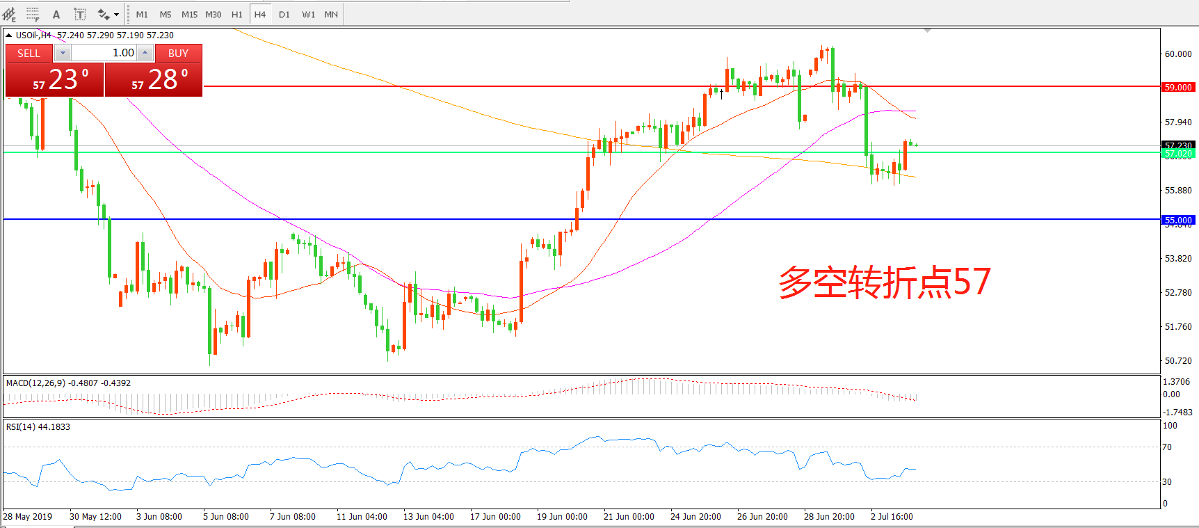 备选策略:在57.00 之上看涨,目标59.00    61.00