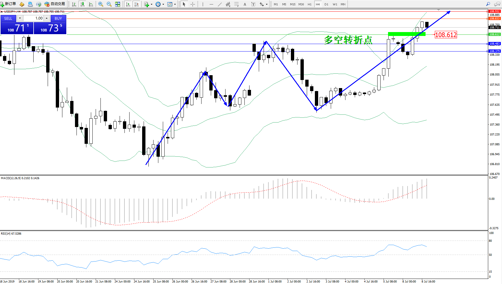 多空转折点:108.612