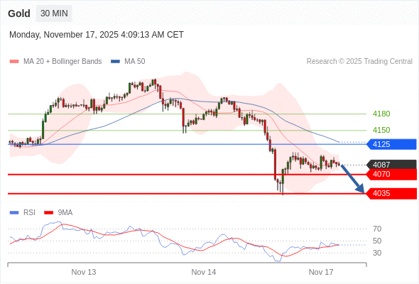 在 4125 之下,看跌,目标价位为 4070 ,然后为 4035 。
