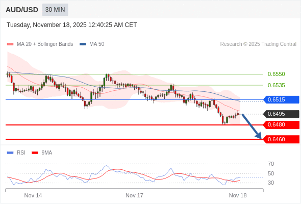 在 0.6515 之下,看跌,目标价位为 0.6480 ,然后为 0.6460 。