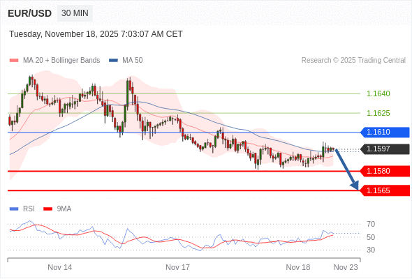 交易策略: 在 1.1610 之下,看跌,目标价位为 1.1580 ,然后为 1.1565 。