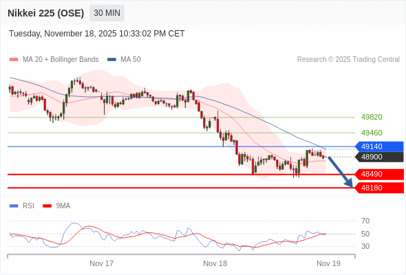 在 49140 之下,看跌,目标价位为 48490 ,然后为 48180 。