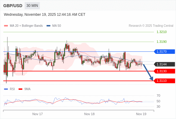 在 1.3170 之下,看跌,目标价位为 1.3130 ,然后为 1.3110 。