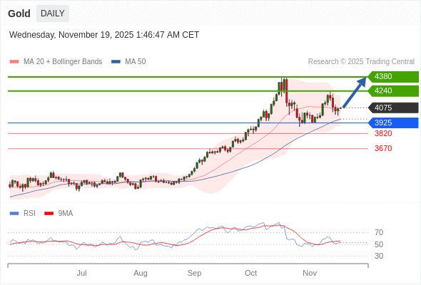 在 3925 之上,看涨,目标价位为 4240 ,然后为 4380 。
