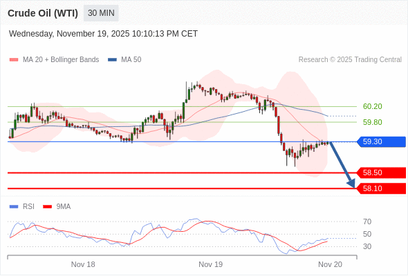 交易策略: 在 59.30 之下,看跌,目标价位为 58.50 ,然后为 58.10 。
