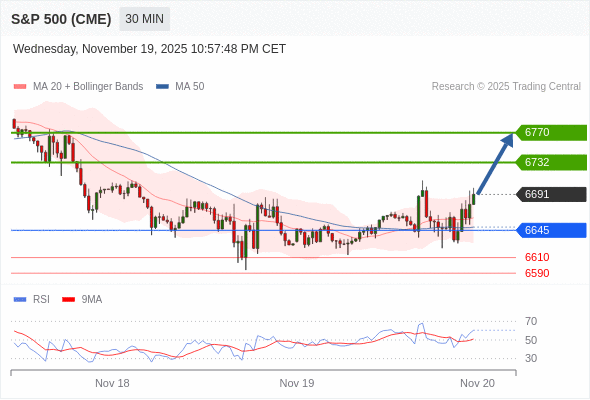 交易策略: 在 6645 之上,看涨,目标价位为 6732 ,然后为 6770 。