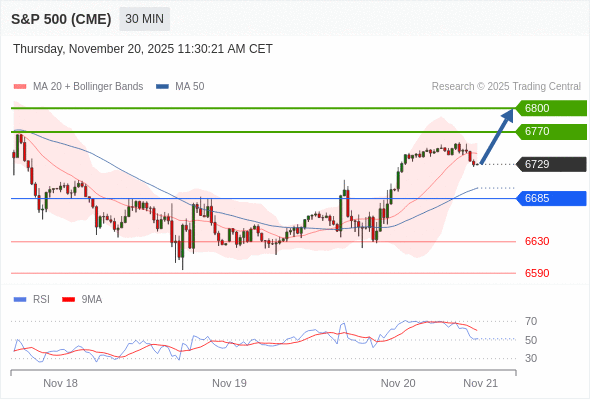 在 6685 之上,看涨,目标价位为 6770 ,然后为 6800 。