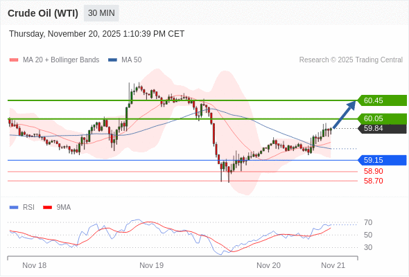 在 59.15 之上,看涨,目标价位为 60.05 ,然后为 60.45 。