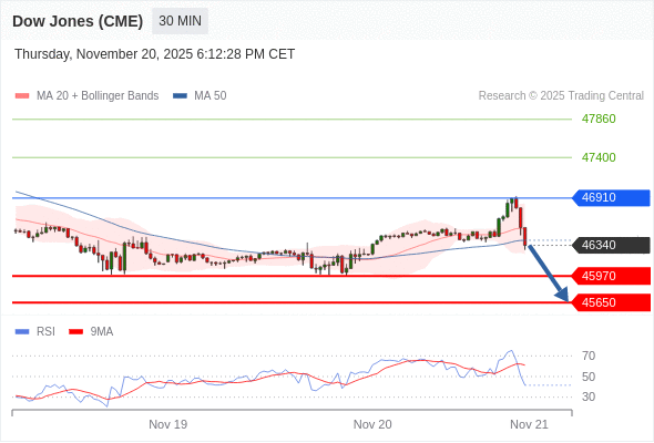 在 46910 之下,看跌,目标价位为 45970 ,然后为 45650 。