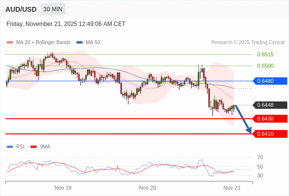交易策略: 在 0.6480 之下,看跌,目标价位为 0.6430 ,然后为 0.6410 。