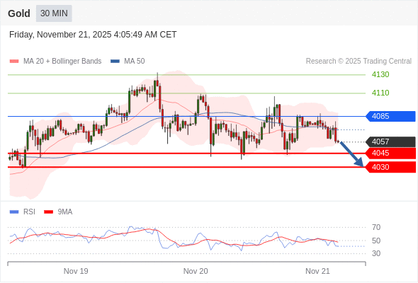 在 4085 之下,看跌,目标价位为 4045 ,然后为 4030 。