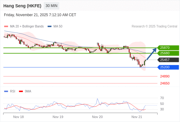 在 25200 之上,看涨,目标价位为 25680 ,然后为 25870 。