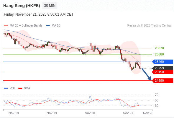 交易策略: 在 25460 之下,看跌,目标价位为 25150 ,然后为 24890 。