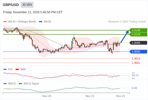 交易策略: 看涨,当 1.3050 为支撑位。