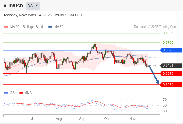 交易策略: 在 0.6620 之下,看跌,目标价位为 0.6370 ,然后为 0.6250 。