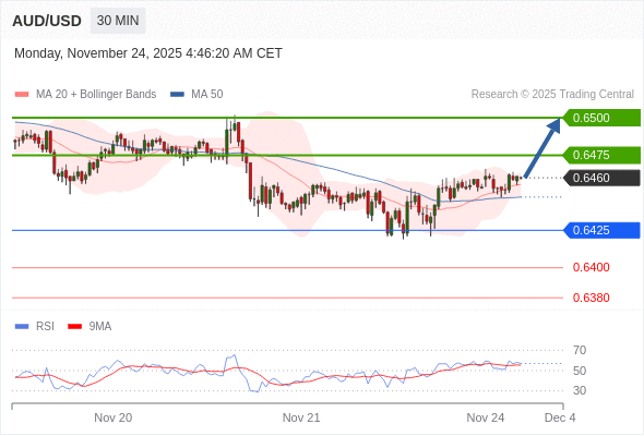 在 0.6425 之上,看涨,目标价位为 0.6475 ,然后为 0.6500 。