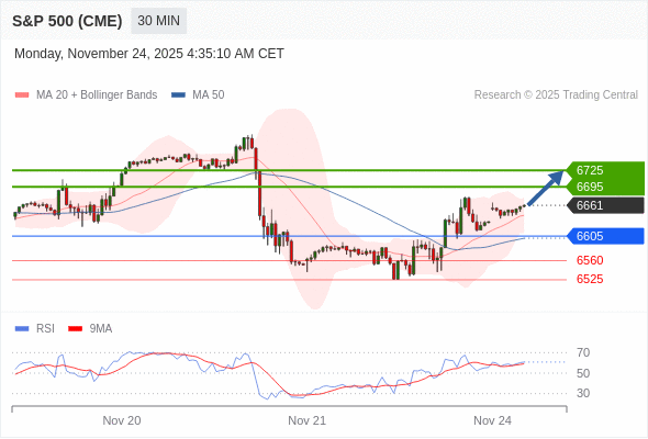 在 6605 之上,看涨,目标价位为 6695 ,然后为 6725 。