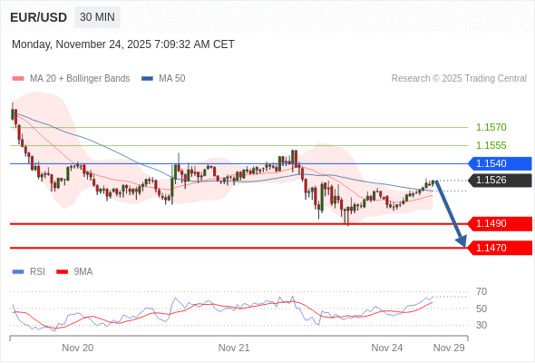 在 1.1540 之下,看跌,目标价位为 1.1490 ,然后为 1.1470 。