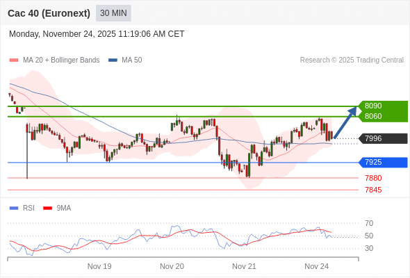 法国CAC指数期货 (Euronext) (Z5) 当日内: 期待8060。