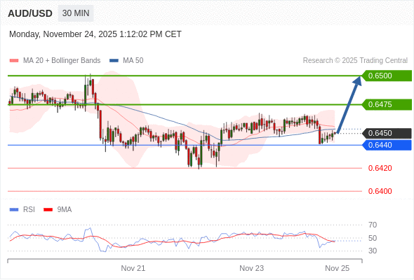 在 0.6440 之上,看涨,目标价位为 0.6475 ,然后为 0.6500 。