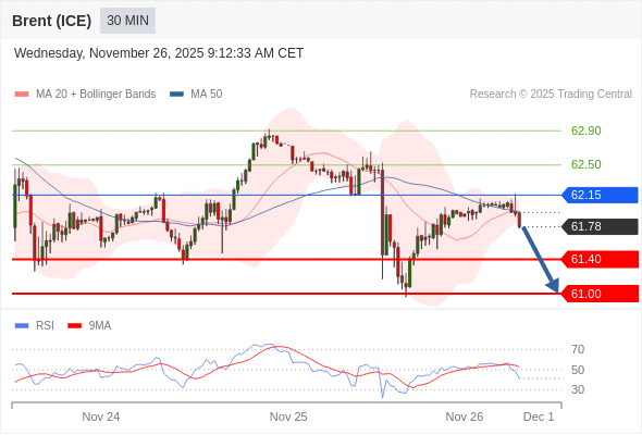 交易策略: 在 62.15 之下,看跌,目标价位为 61.40 ,然后为 61.00 。