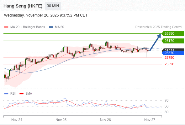 在 25870 之上,看涨,目标价位为 26170 ,然后为 26350 。