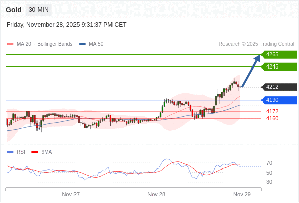在 4190 之上,看涨,目标价位为 4245 ,然后为 4265 。