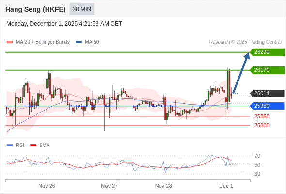 在 25930 之上,看涨,目标价位为 26170 ,然后为 26290 。