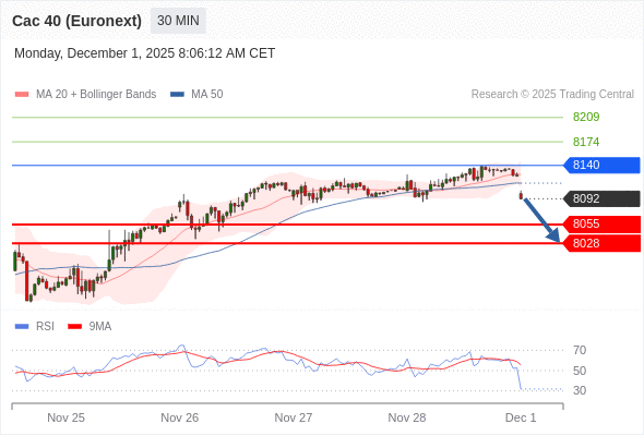 在 8140 之下,看跌,目标价位为 8055 ,然后为 8028 。