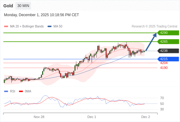 在 4215 之上,看涨,目标价位为 4265 ,然后为 4290 。