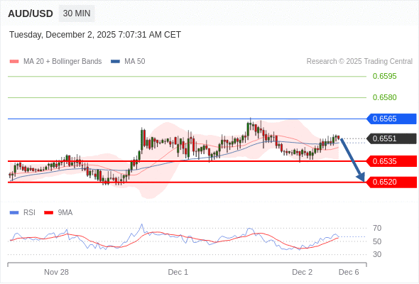 在 0.6565 之下,看跌,目标价位为 0.6535 ,然后为 0.6520 。