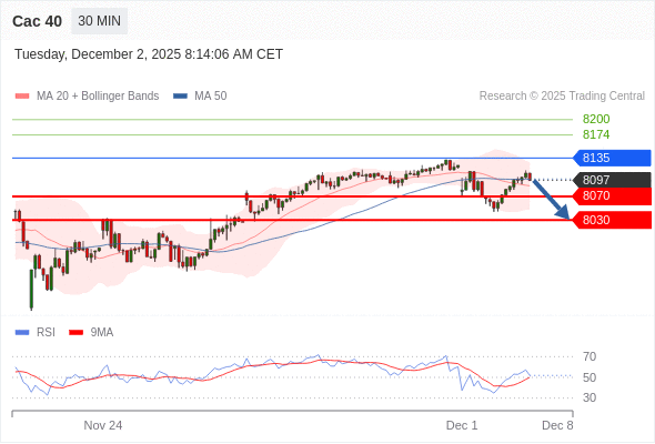 在 8135 之下,看跌,目标价位为 8070 ,然后为 8030 。